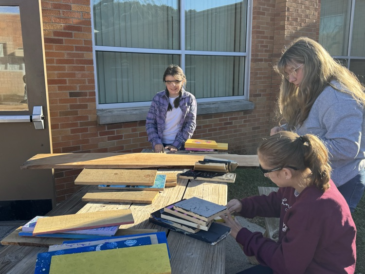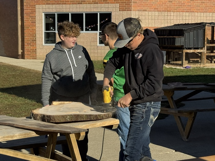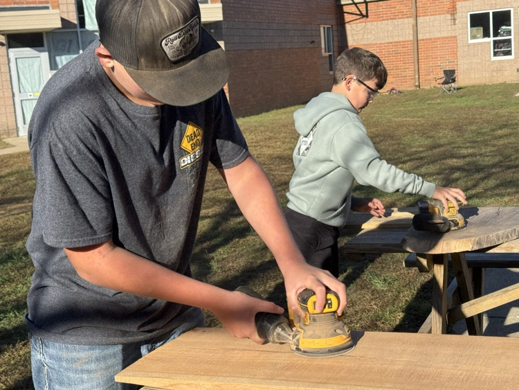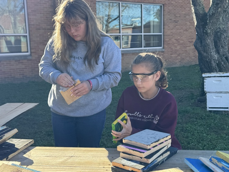 Mr. Crumps industrial arts class enjoys the beautiful weather as they create bird house, cutting boards and serving trays!