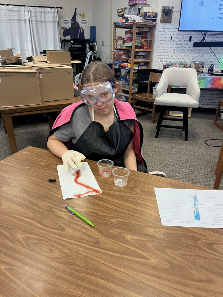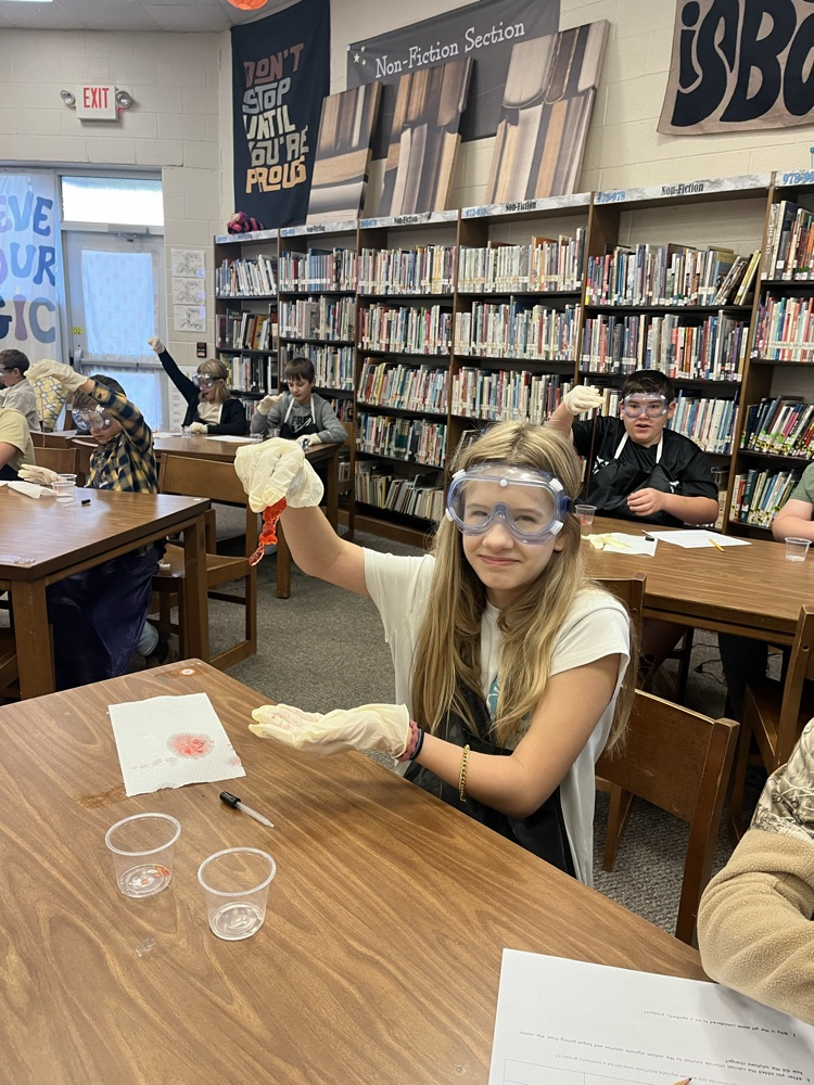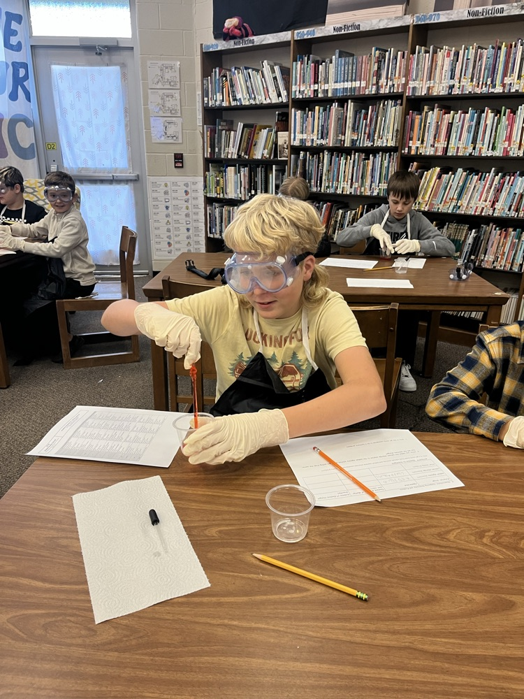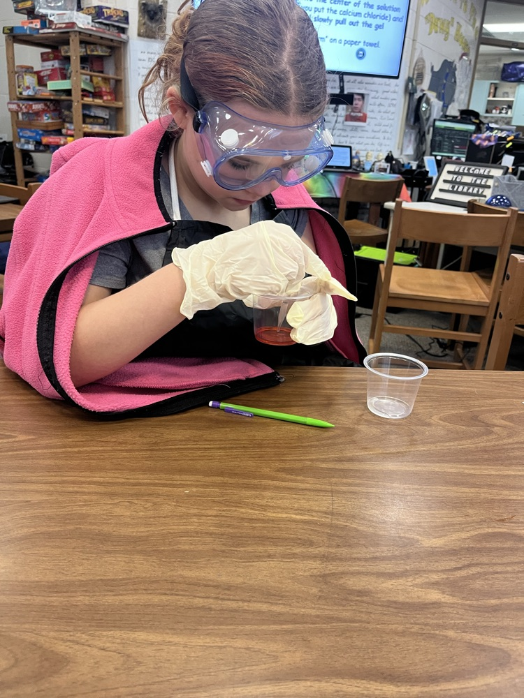 6th grade scientists in Mrs. Cattell’s class were able to explore creating synthetic materials from natural materials. They used sodium alginate (seaweed) and calcium chloride (limestone), combined them to create a polymer “worm.” Special thanks to Mrs. Webster for helping.