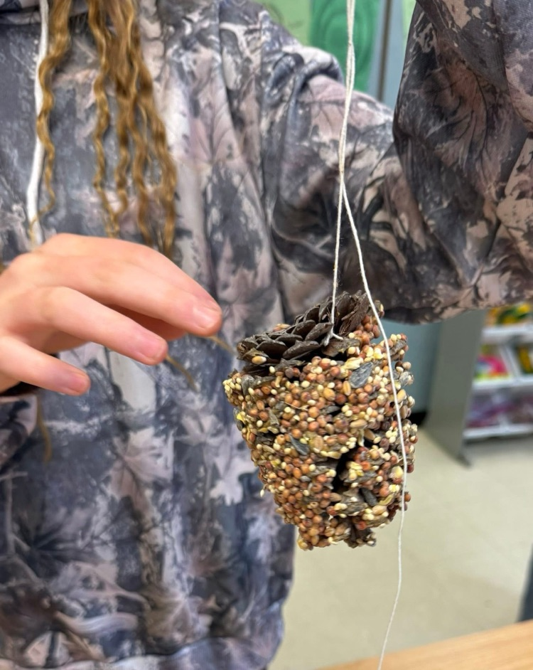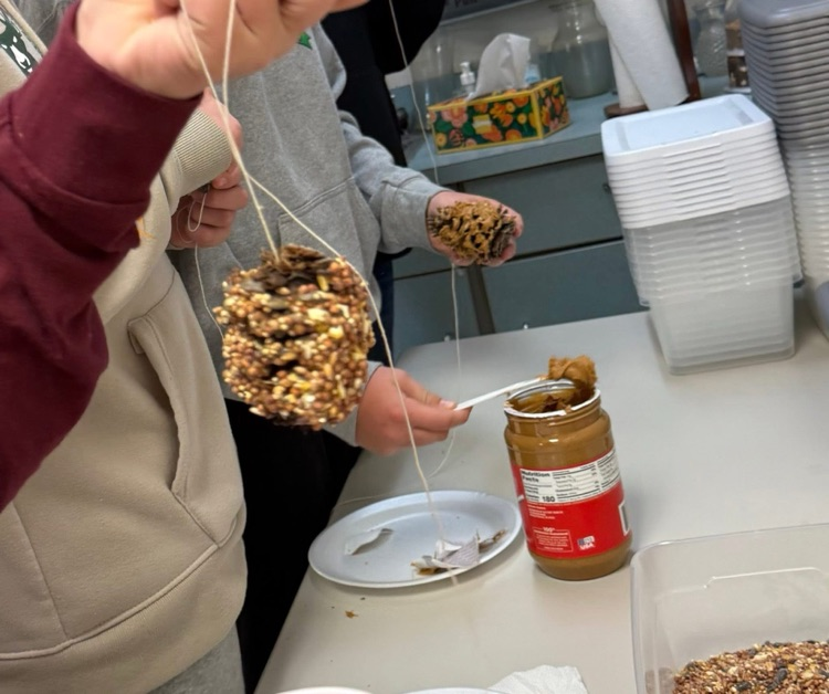 Mrs. Fraley loves doing special little things with her students. She shared that they always ask if she does this with her grandchildren and of course she tells them "Yes". Today her classes took pine cones, spread them with peanut butter, and rolled them in bird seed. They hung them in our tree in front of the school to provide Thanksgiving for the birds. Sometimes you need to take a step back and enjoy the small things.